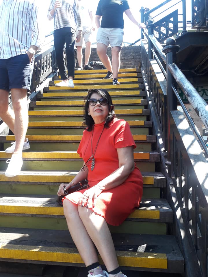 Fab India suits and dupattas (silks and cotton both) are my other go-to attire. My wardrobe has dupattas as old as 16 years brought from Fabindia stores in Delhi, Chandigarh, Mumbai and Kolkatta- places that we kept moving to over the last 20 years of our married life. The one in the picture is an absolute favourite Lucknowi suit with a pink floral cotton duppatta. (Fab India)